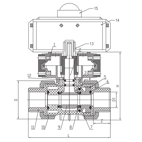 우수한 품질, 내구성이 있는 반동 공압 소켓 볼 밸브, 플라스틱 온도 공압 볼 밸브에 적합
