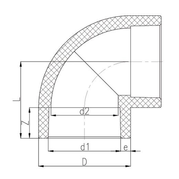 PPH 핫멜트 소켓 90° 엘보 DN15-100 GB 표준